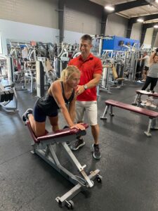 “The workouts started virtually and continued in person during the summers. The exercises with weights targeted every muscle group and boosted Moyer’s metabolism. Claire (CTF Personal Trainer) customized each session to include a push, a pull, a hinge, and a quad-dominant movement, and instead of focusing on numbers on the scale, she asked her to take pictures weekly.” Congrats Bridget